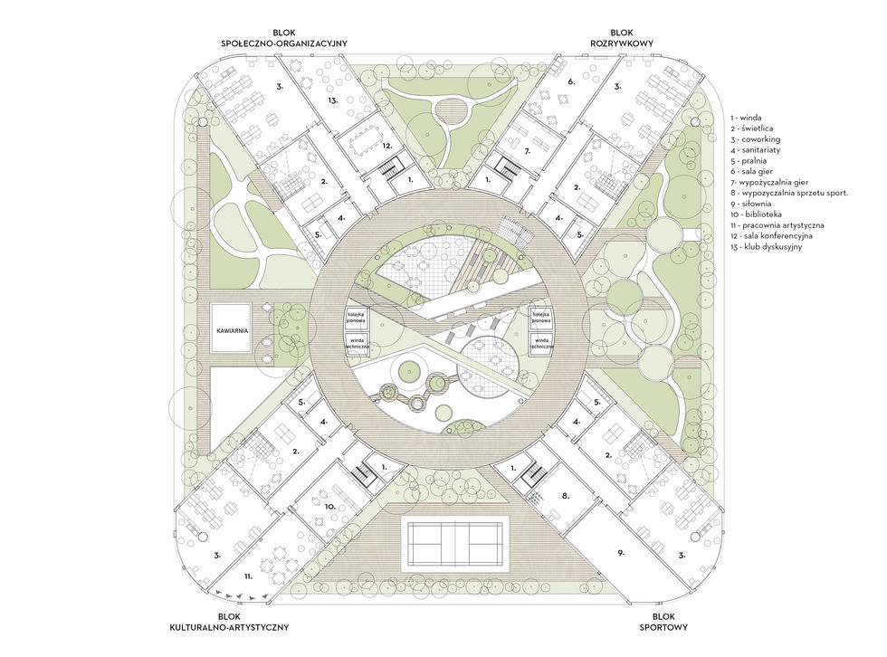 Projekt zakłada stworzenie alternatywnego samowystarczalnego miasta przyszłosci. Jako punkt wyjścia przyjęto podstawowe aspekty, takie jak zamieszkanie, usługi, praca oraz aspekty uzupełniające: edukacja i produkcja.
